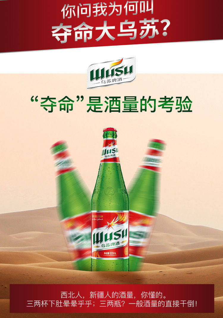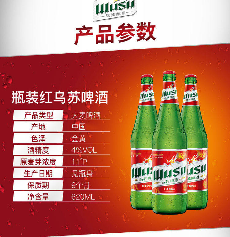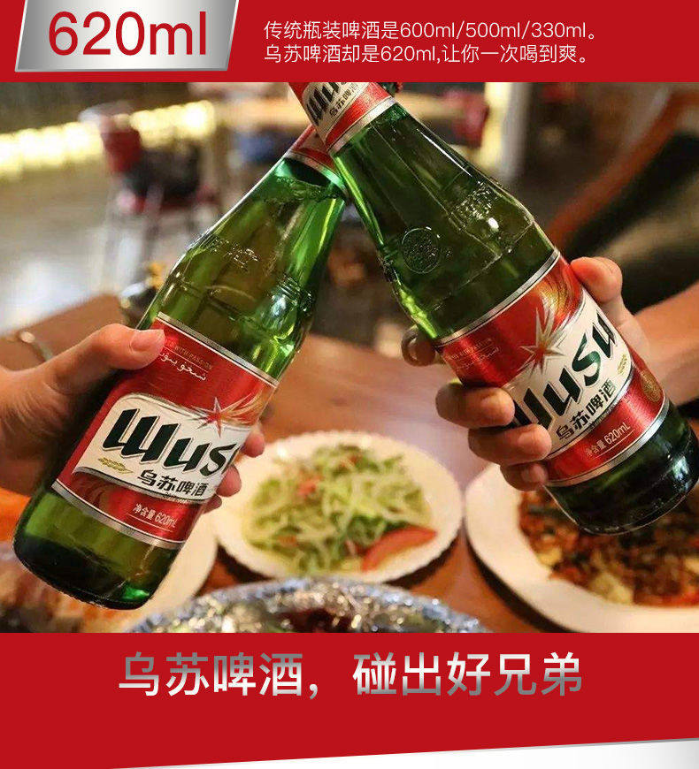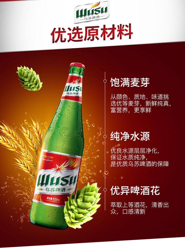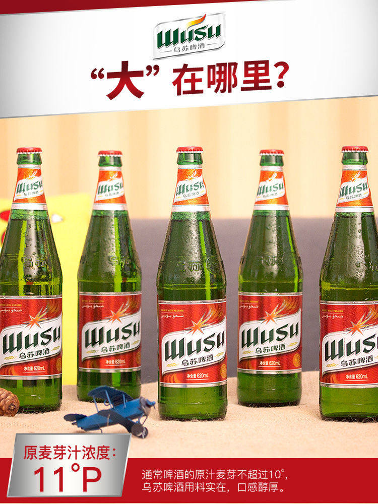 新疆夺命大红乌苏啤酒620ml* 12瓶装整箱新日期黄啤拉格高浓度