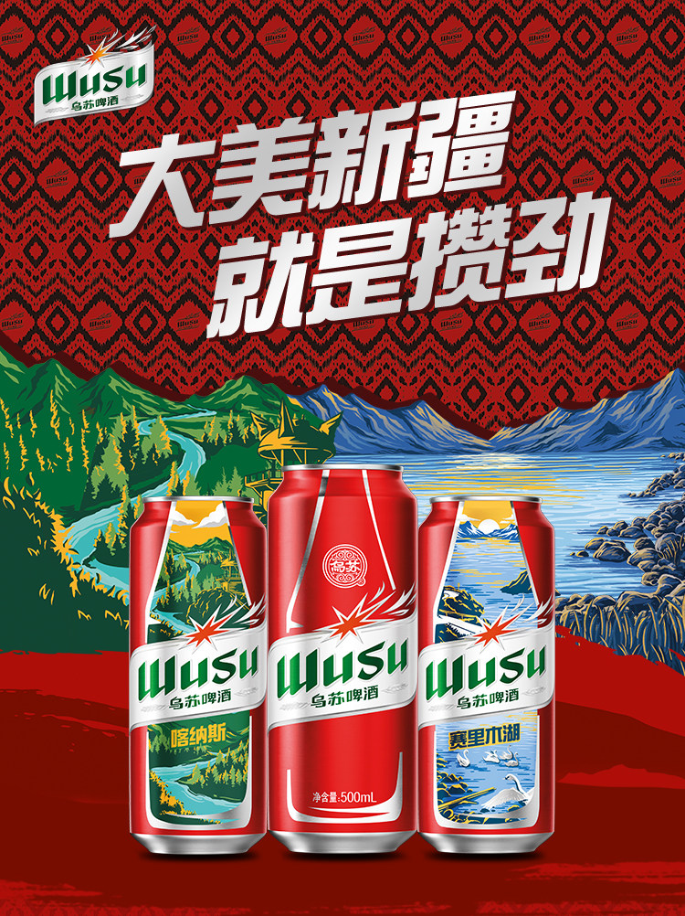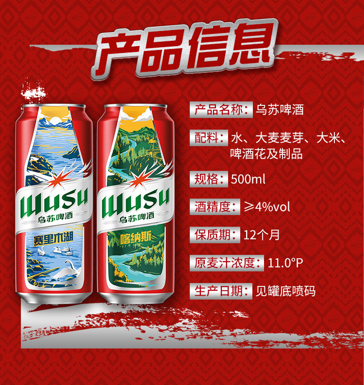 乌苏啤酒500ml*12罐装啤酒新疆大红乌苏原箱整箱酒水