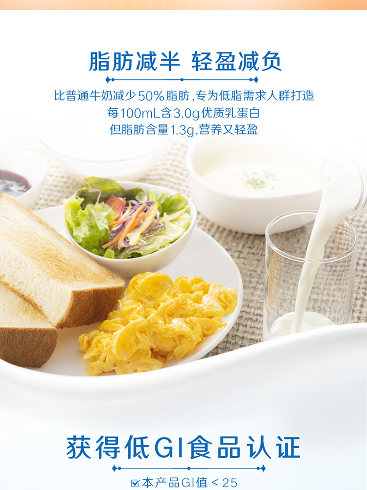 脂肪含量:低脂牛奶