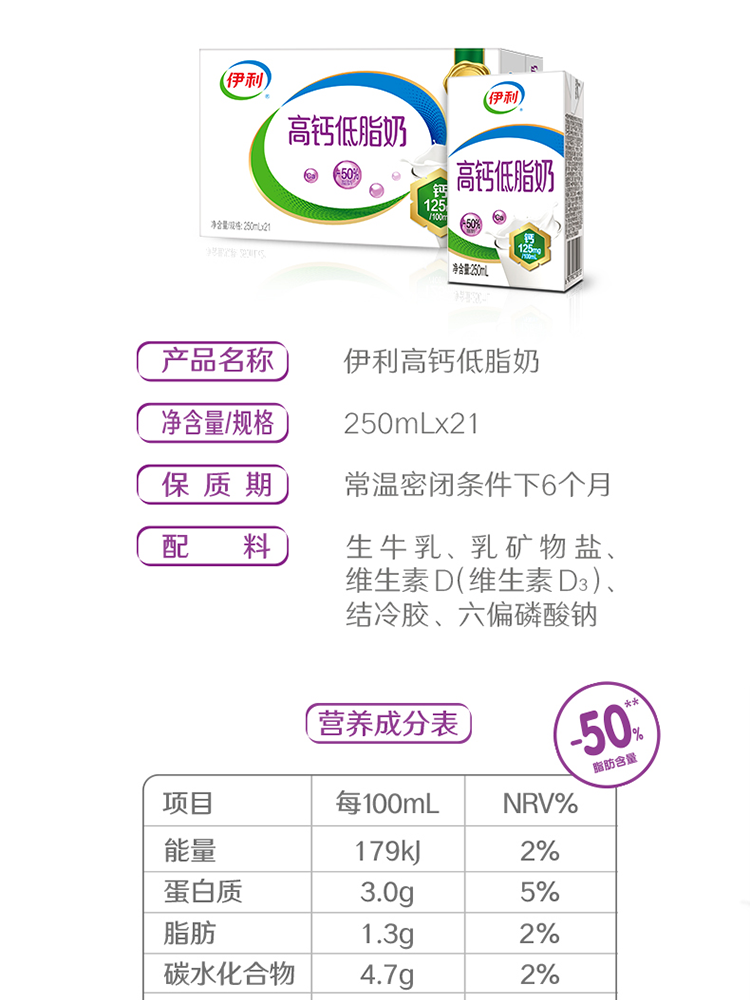 伊利高钙低脂牛奶250ml*21盒【带提手】送礼礼盒装