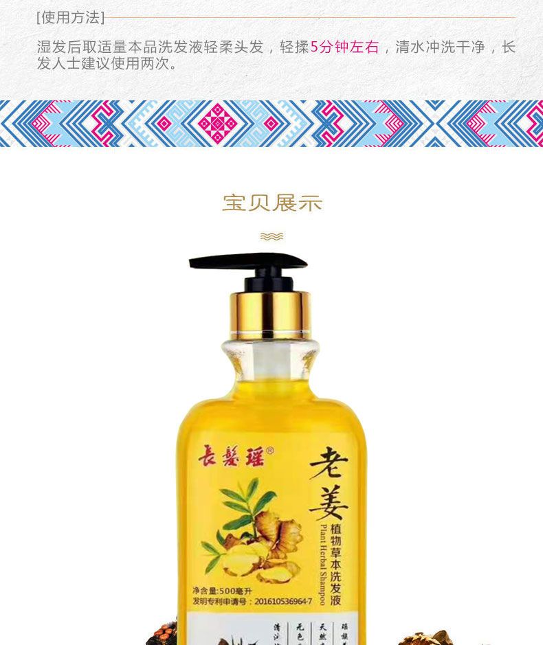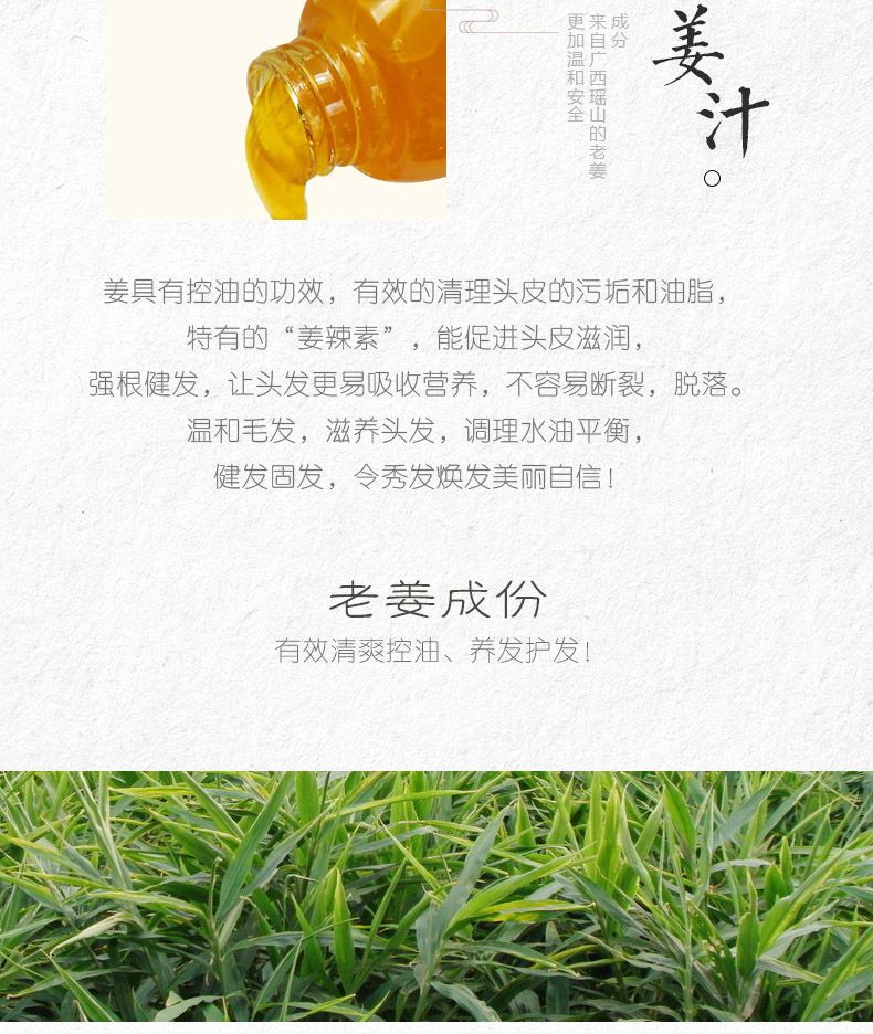 长发瑶生老姜汁辣姜洗发水植物油性发质专用控油健发滋养头皮无硅